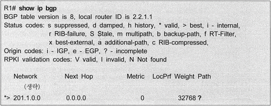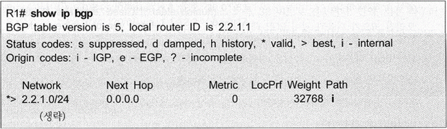 -해당 네트워크를 BGP에 포함시킨 방법을 표시