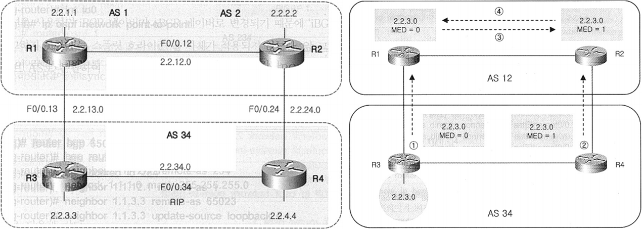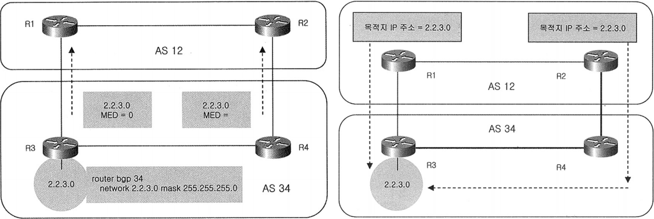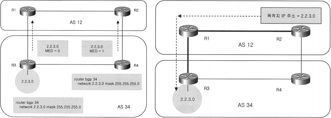 →MED 값은 라우팅 테이블의 해당 네트워크 메트릭 값이 사용