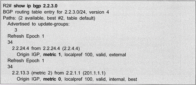 -R2에게 2.2.3.0에 대한 MED 값이 0이라고 알림