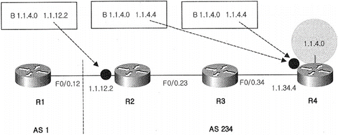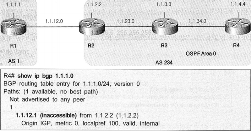 - 수신한 BGP NLRI는, nexthop address가 IGP routing table에서 reachable 해야 유효하다.