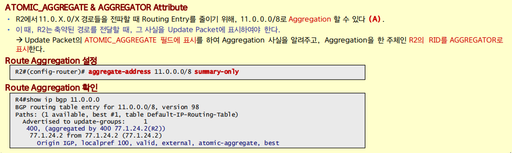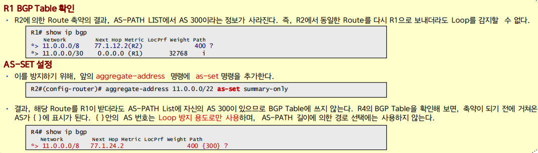 -축약 시 기본적으로 BGP Table에 AS 경로가 나타나지 않지만